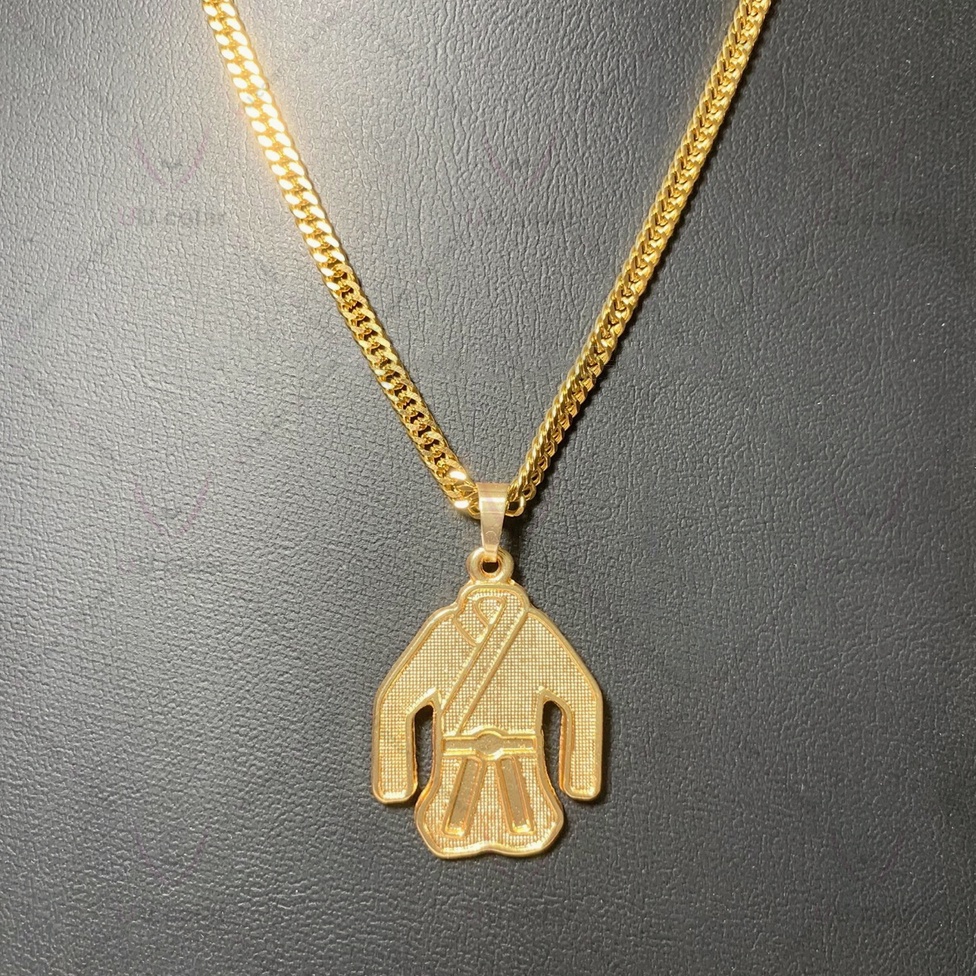 Corrente de quimono Elo Duplo Grumet 4mm Aço Inox Com Pingente Faixa Preta Dourado em Folheado em Masculino