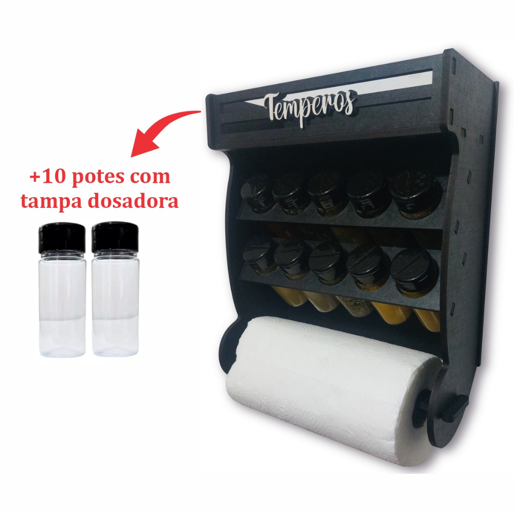 Porta Temperos com Local Para Colocar Potes + Kit 10 Potes de Tempero.