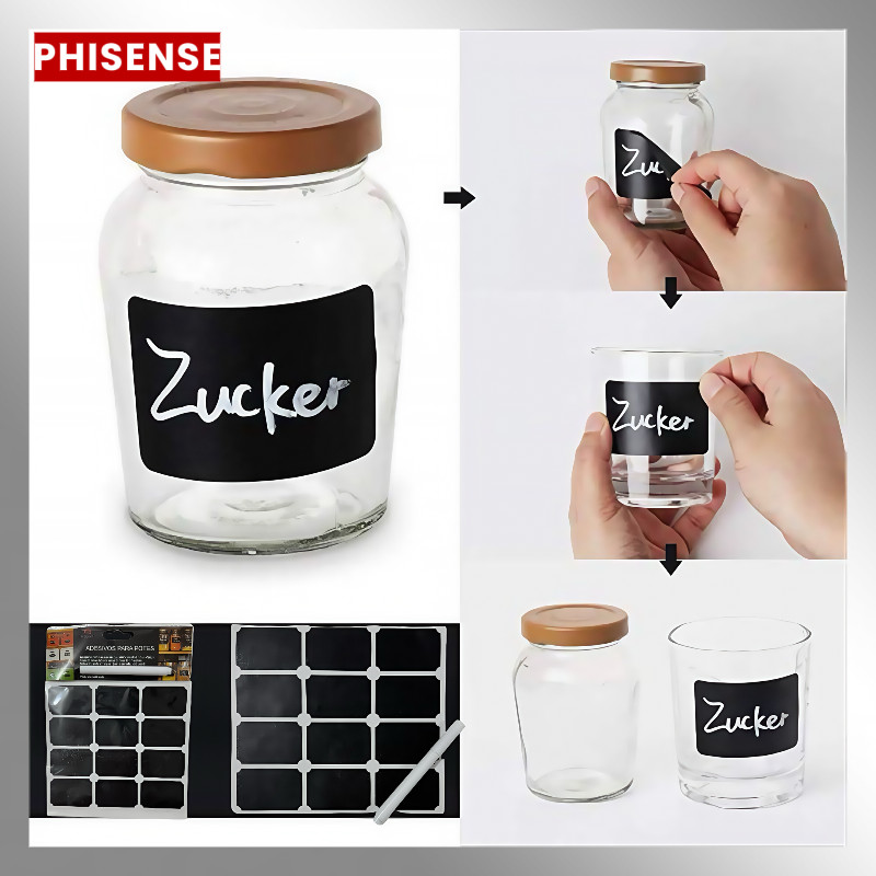 KIT 24-72 Etiquetas Adesivas Lousa Preta+Caneta Giz Liquido Branca Temperos Potes Organizador Limpeza