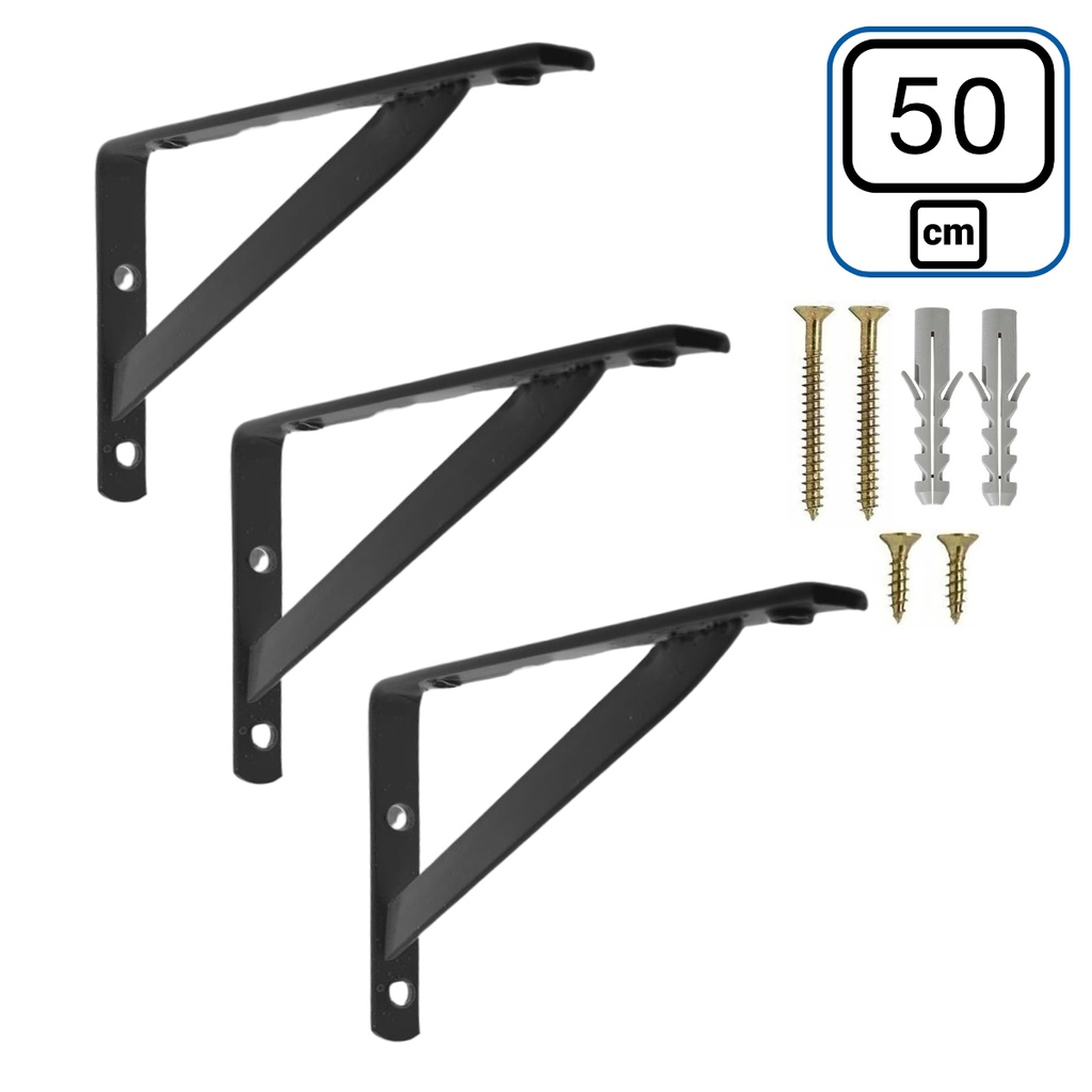 Mão Francesa 50cm 3 peças Preta - Suporte para Prateleira de Parede Cantoneira Industrial