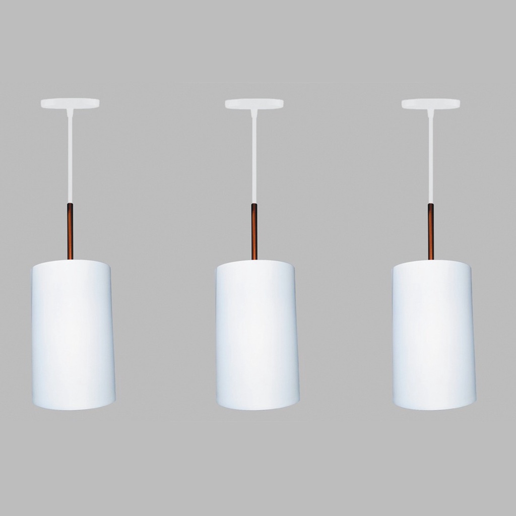 kit com 3 pendentes lustre luxo branco/cobre casa e decoração GR luminarias