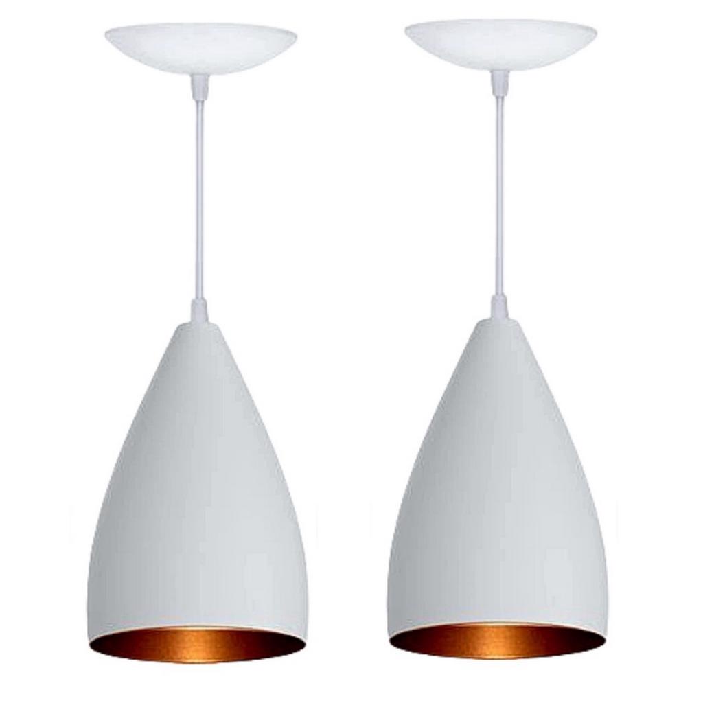 Lustres Kit 2 Pendente Vegas Luminaria Branco com Cobre