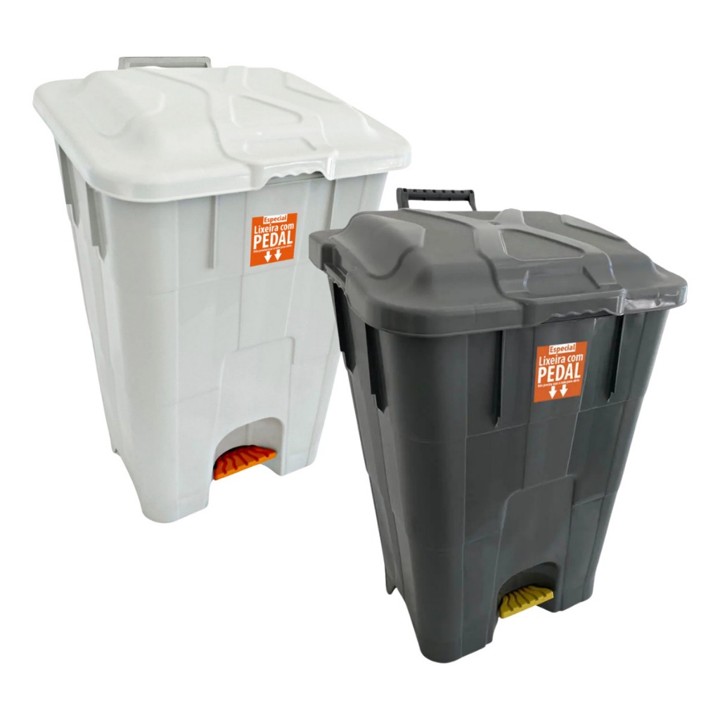 Lixeira com Pedal 60 Litros Grande Cesto Reforçado Tampa Preta Branca Lixão Para Cozinha e Comércio