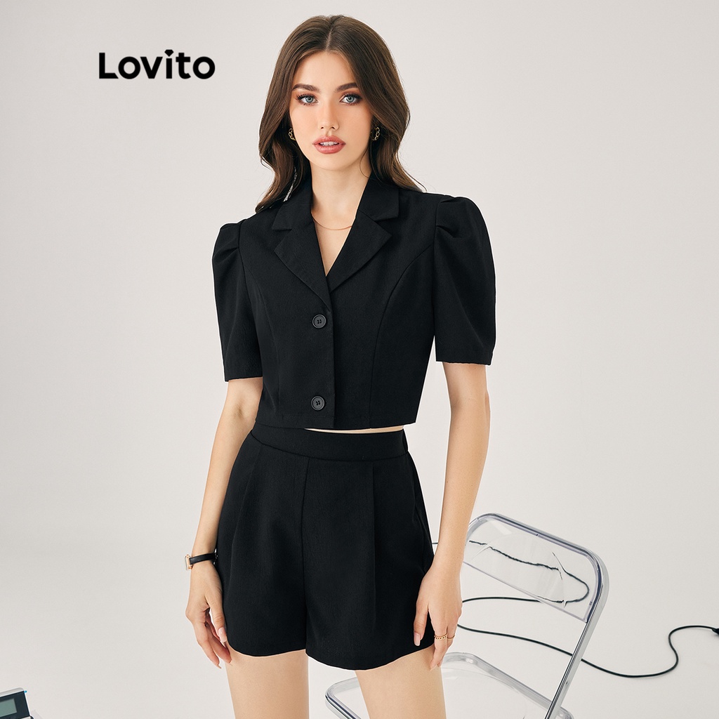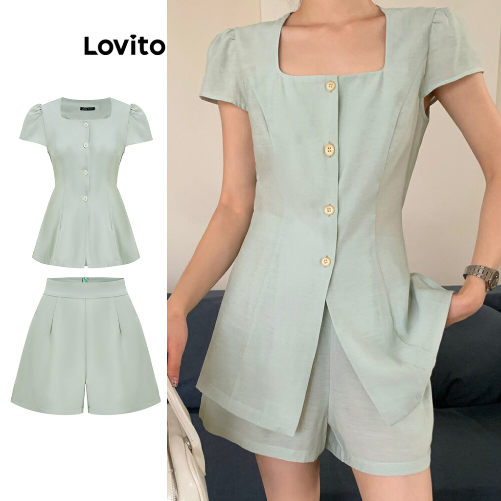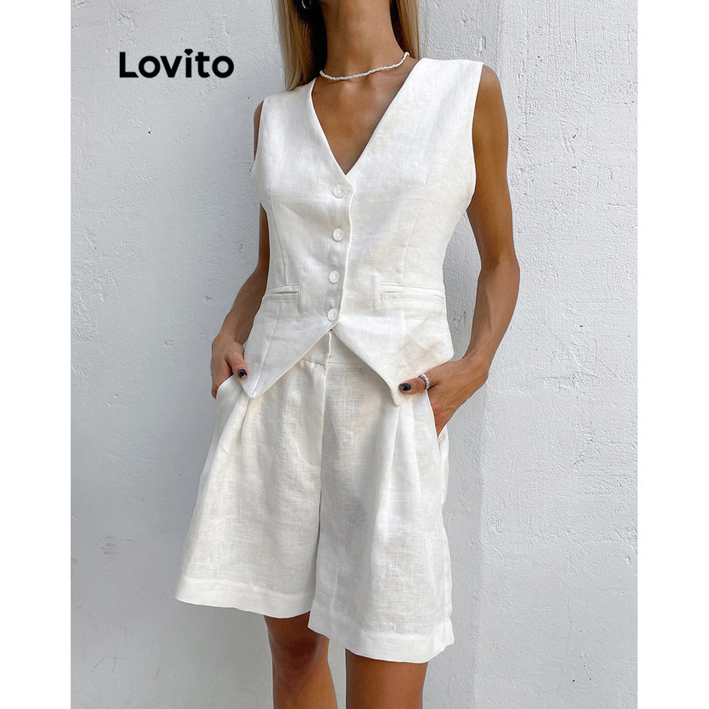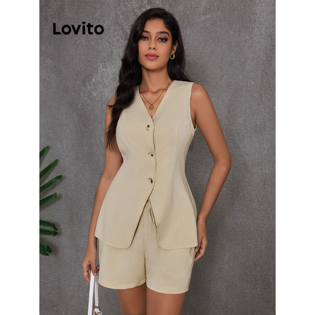 Lovito Conjuntos elegantes de shorts simples com botões para mulheres LBL16048