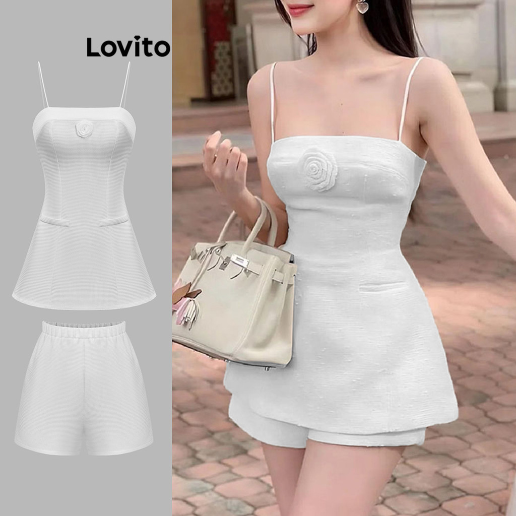 Lovito Conjuntos elegantes de shorts com apliques lisos para mulheres L88AD122