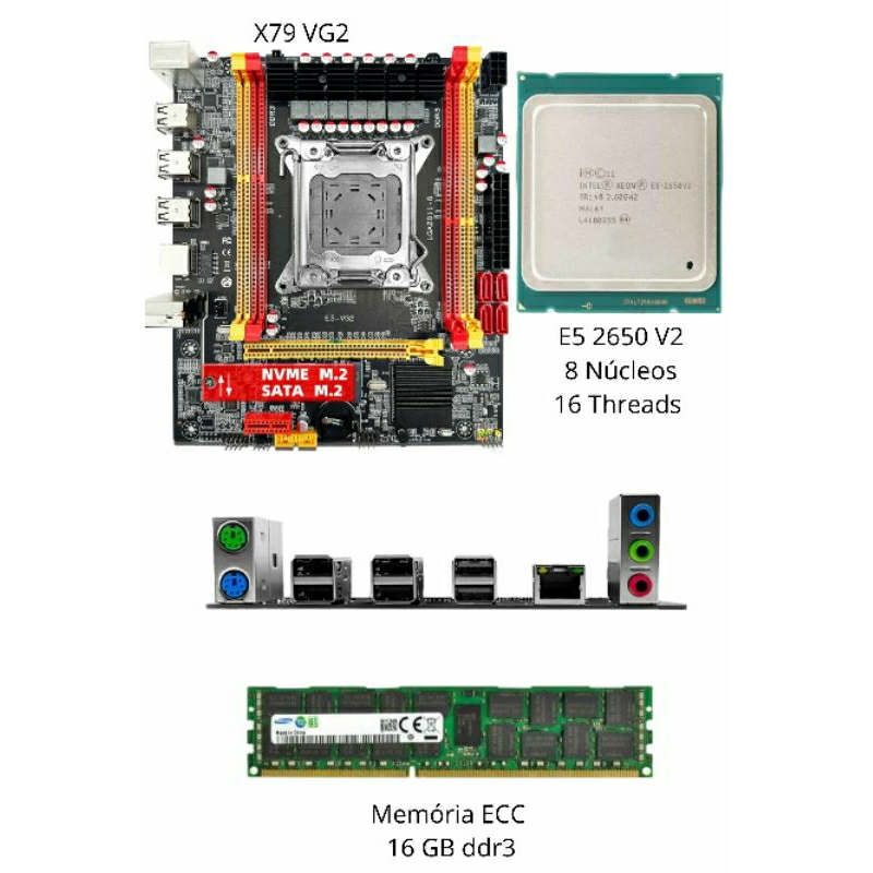 Kit Gamer Placa Mãe X79 VG2 + Processador Xeon E5 2650 V2 + Memória ECC DDR3 16GB