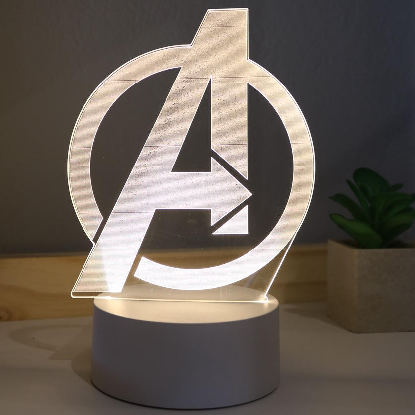 Luminária LED 3D de Mesa / Luz Noturna Presente Criativo / Decoração - The Avangers, Vingadores, Super-Herói, Marvel Comics, Logo