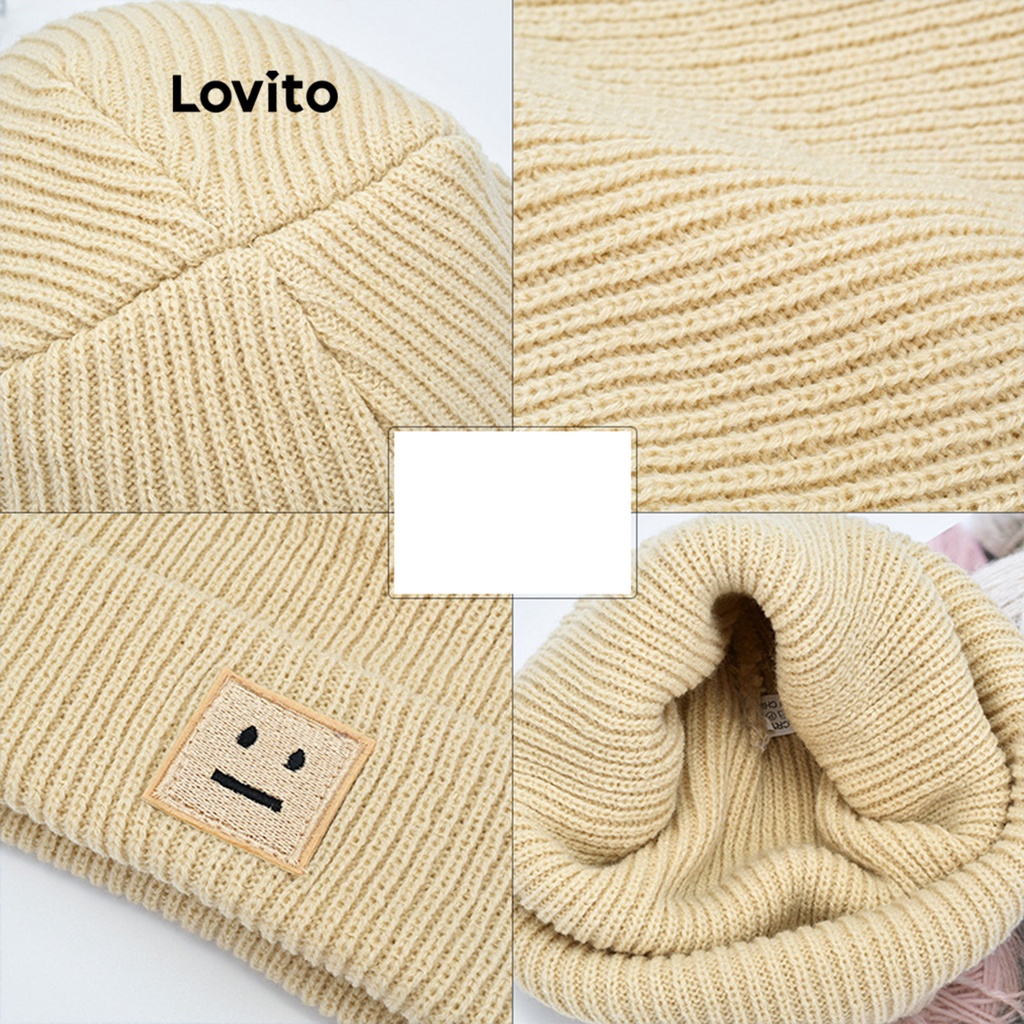 Lovito Touca Casual com Logotipo de Expressão Bordado para Mulheres LFA04205 (Cinza/Branco/Preto)