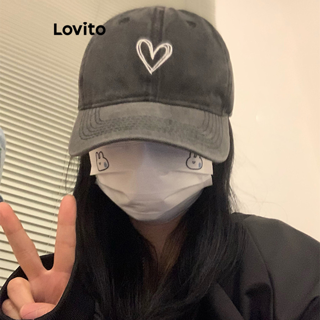 Lovito Boné De Beisebol Bordado Em Formato De Coração Casual L233L248 (Preto/Branco)