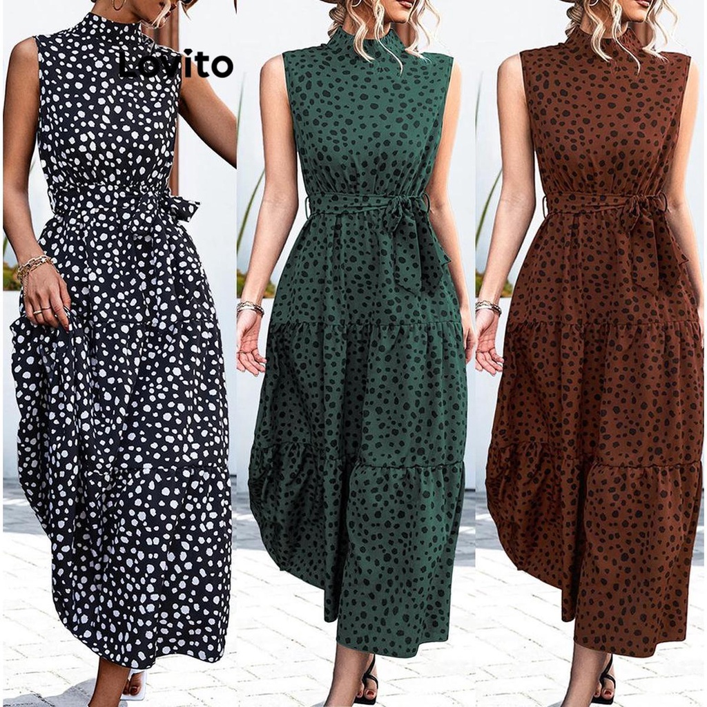Lovito Vestido Elegante Com Cinto E Camada De Bolinhas Para Mulheres LNL41090