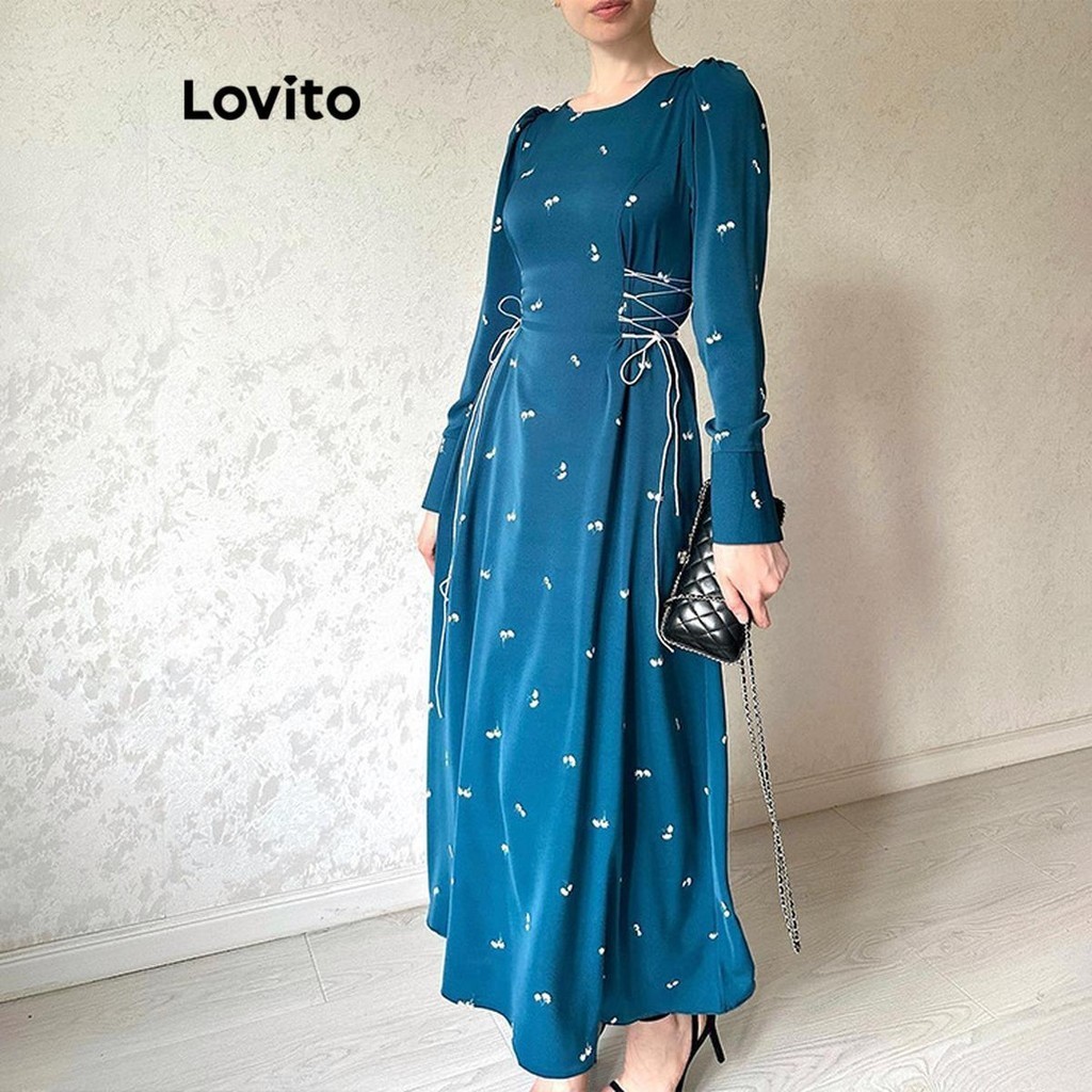 Lovito Vestido casual de bolinhas com cordão para mulheres LNL57336