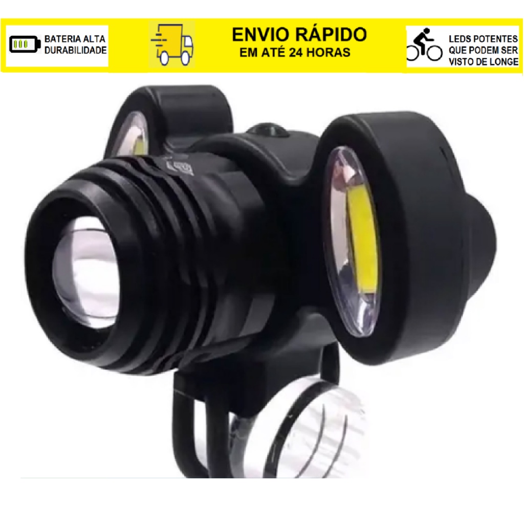 Farol Lanterna Bike Biclieta 3 Focos Led Com Zoom Recarregável Ciclismo