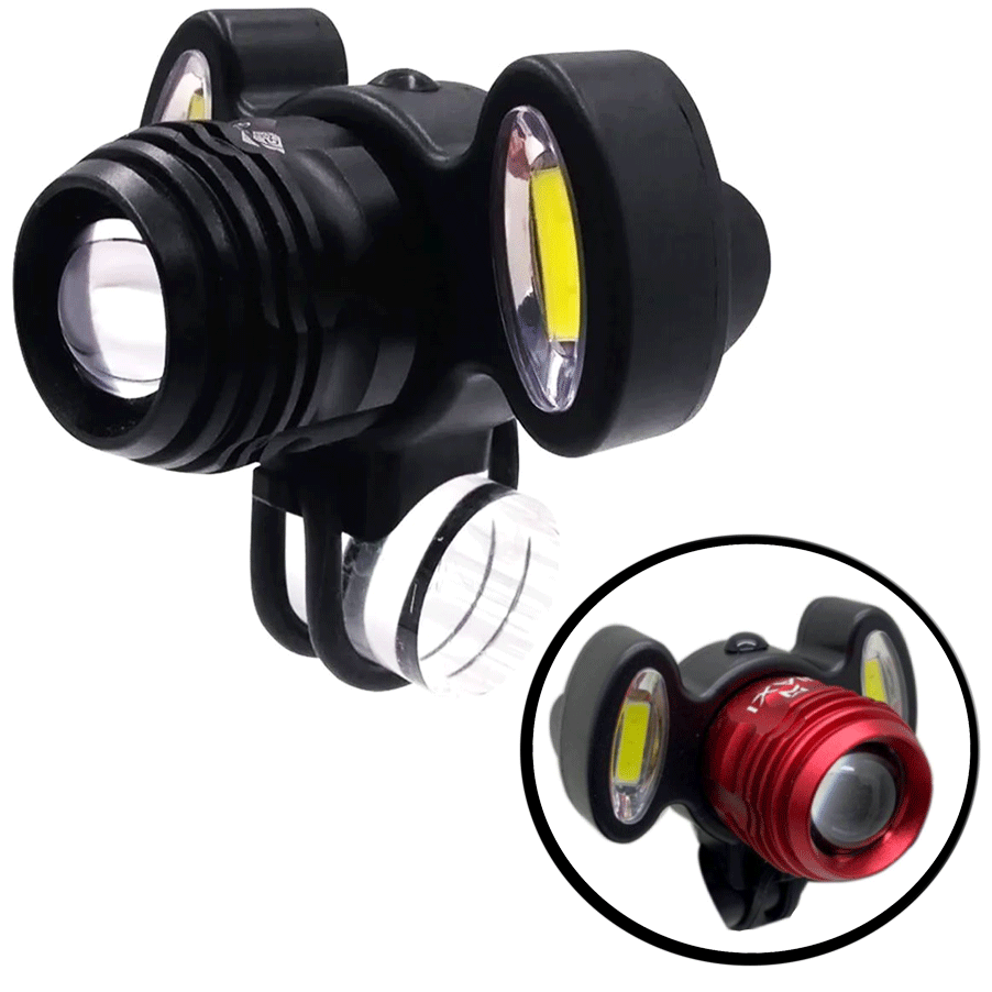 Farol Lanterna 3 Focos Bike Led Zoom Recarregável + Sinalizador Traseira Bike Led Recarregável Usb