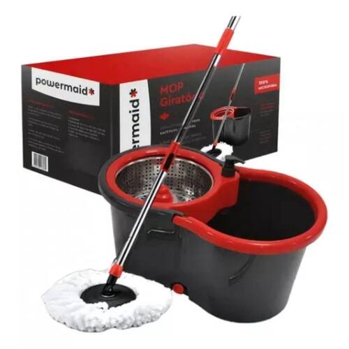 Mop Kit de Limpeza Giratório Inox Com Balde e Esfregão 360