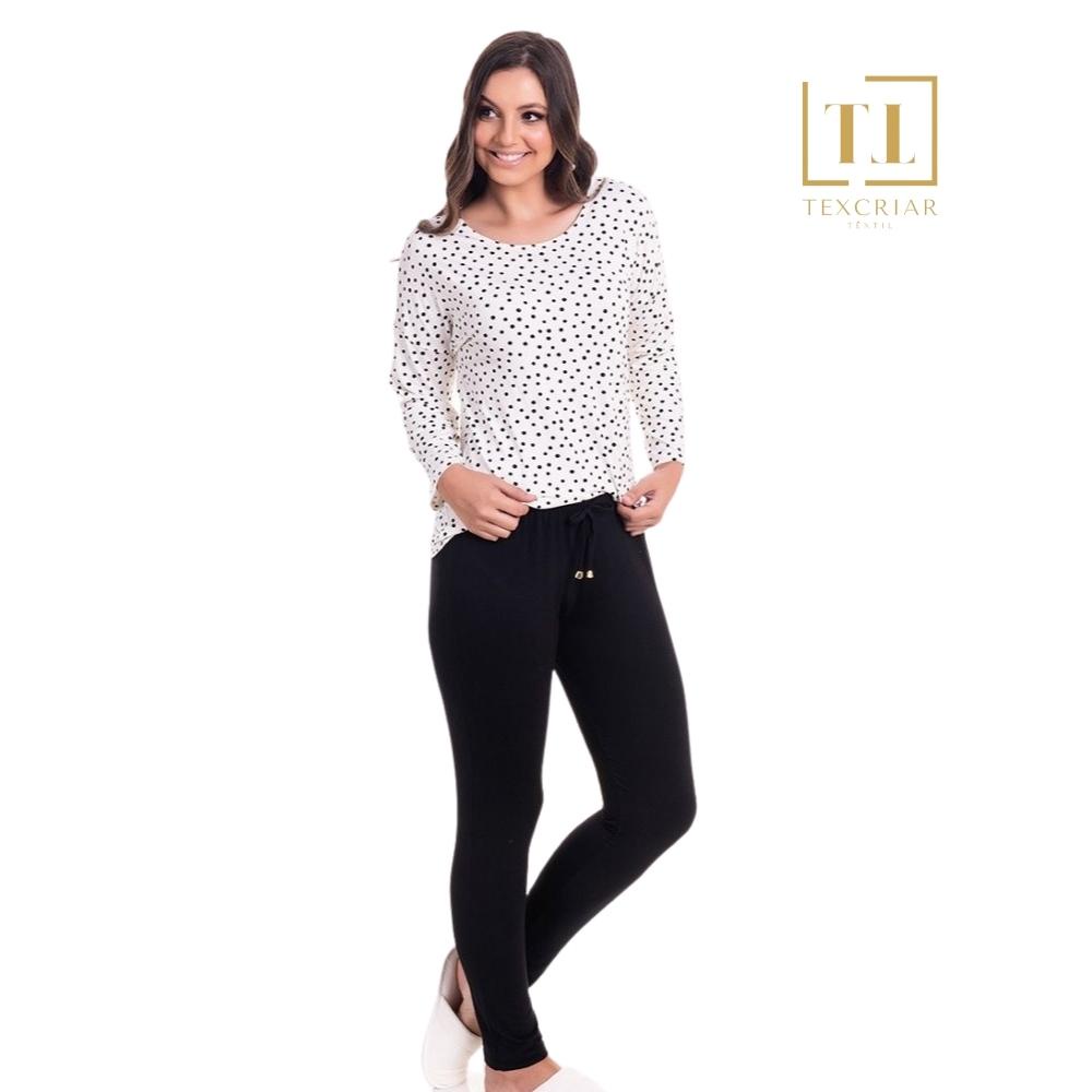 Conjunto Feminino 2 Peças Lanzinha Inverno Calça e Blusa de Manga Longa com Gola
