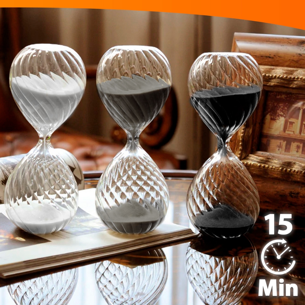 Ampulheta De Vidro Decorativa Ornamentada 15 Minutos Várias Cores OFERTA