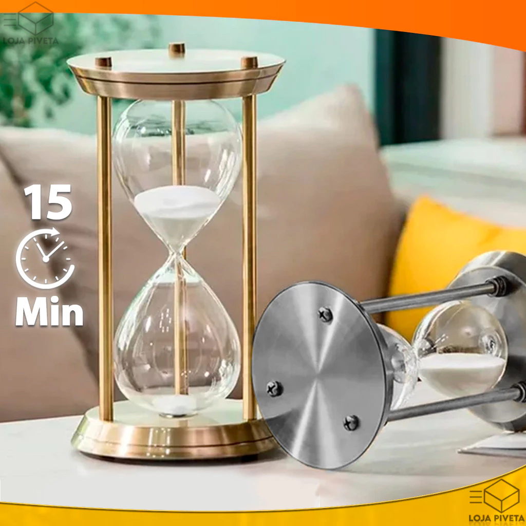 Ampulheta Decorativa De Vidro E Ferro Com Areia 15 Minutos OFERTA