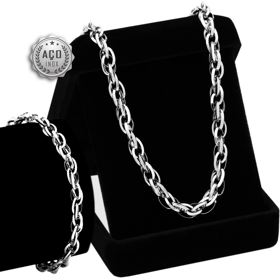 Conjunto Corrente Pulseira Masculina 4mm Cj-82 Aco Inox 316l OGrife