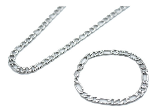 Conjunto Corrente e Pulseira Masculina Fino 2mm Aço Inox CJ-128 Prata Não Fica Preto