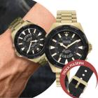 Relógio Masculino Technos Skydiver Dourado e Preto Digital e Analógico Troca a Pulseira Kit com 2 Pulseiras à Prova D Água Social Casual Luxo Elegante