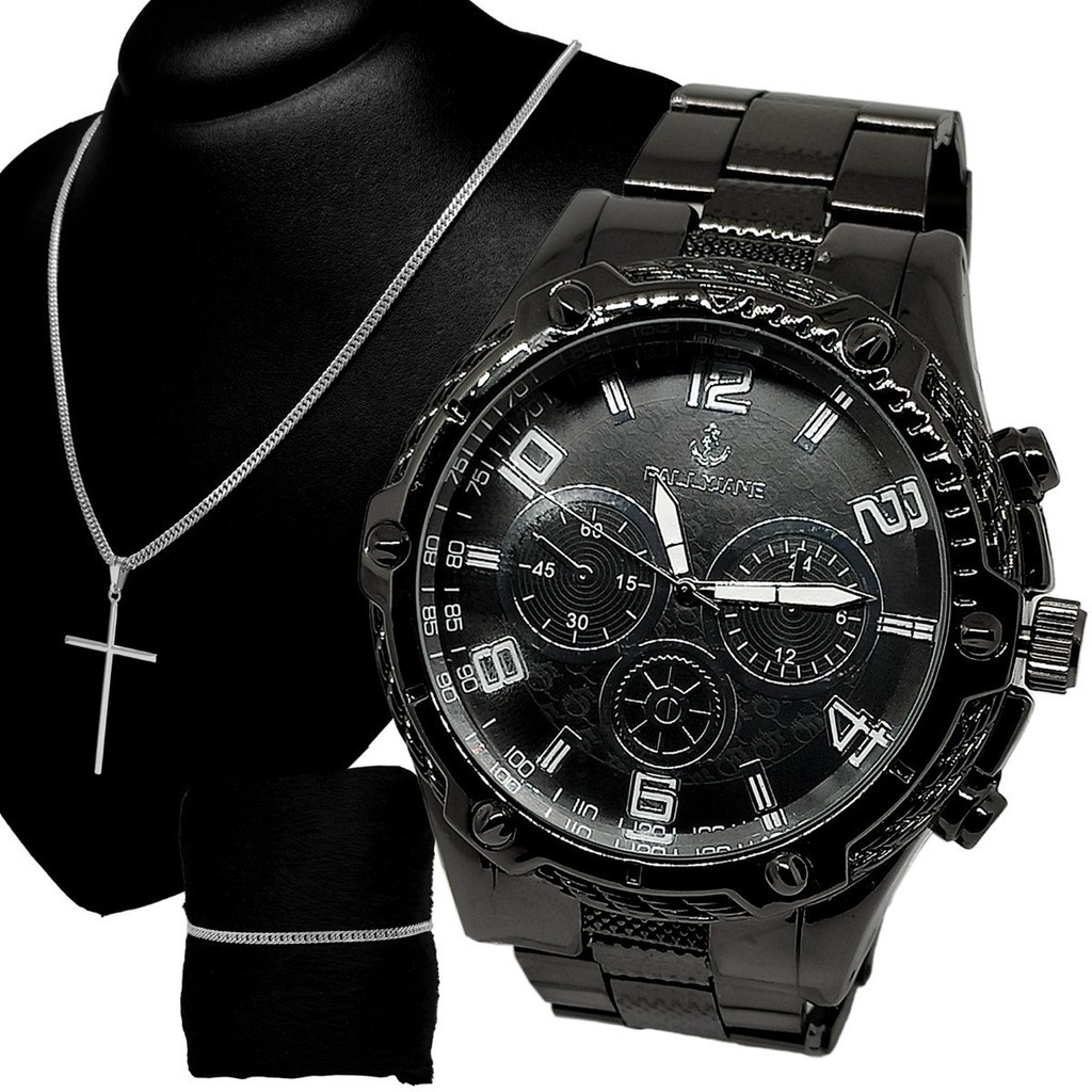Relógio Aço Preto Masculino Á Prova D'água Lançamento + Kit Corrente