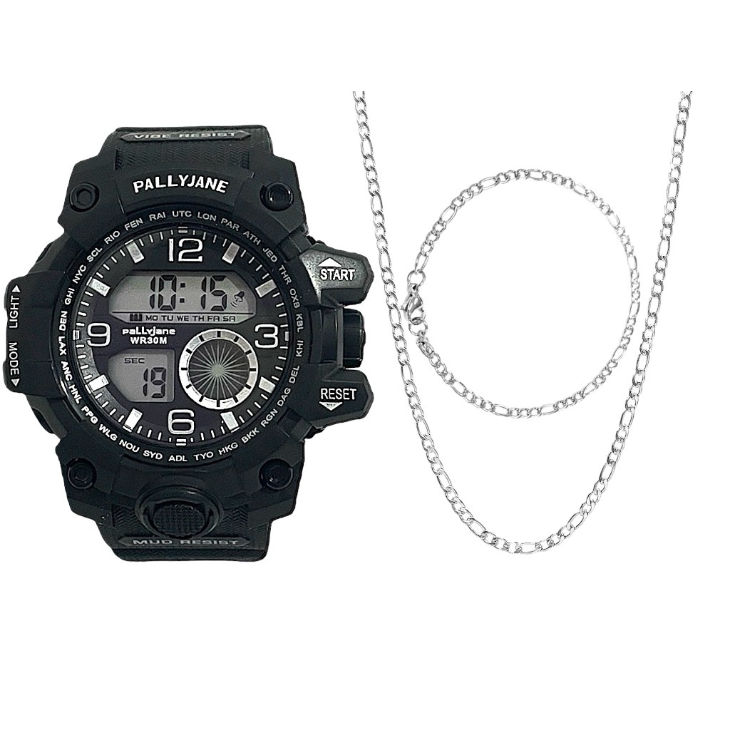 Relógio Masculino Digital à Prova D'Água + kit Corrente e Pulseira 3x1