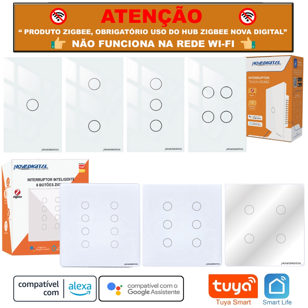 Interruptor Smart Zigbee Touch Tuya Nova Digital Modelos de 1/2/3/4/6/8 Botões > NÃO É WI-FI <