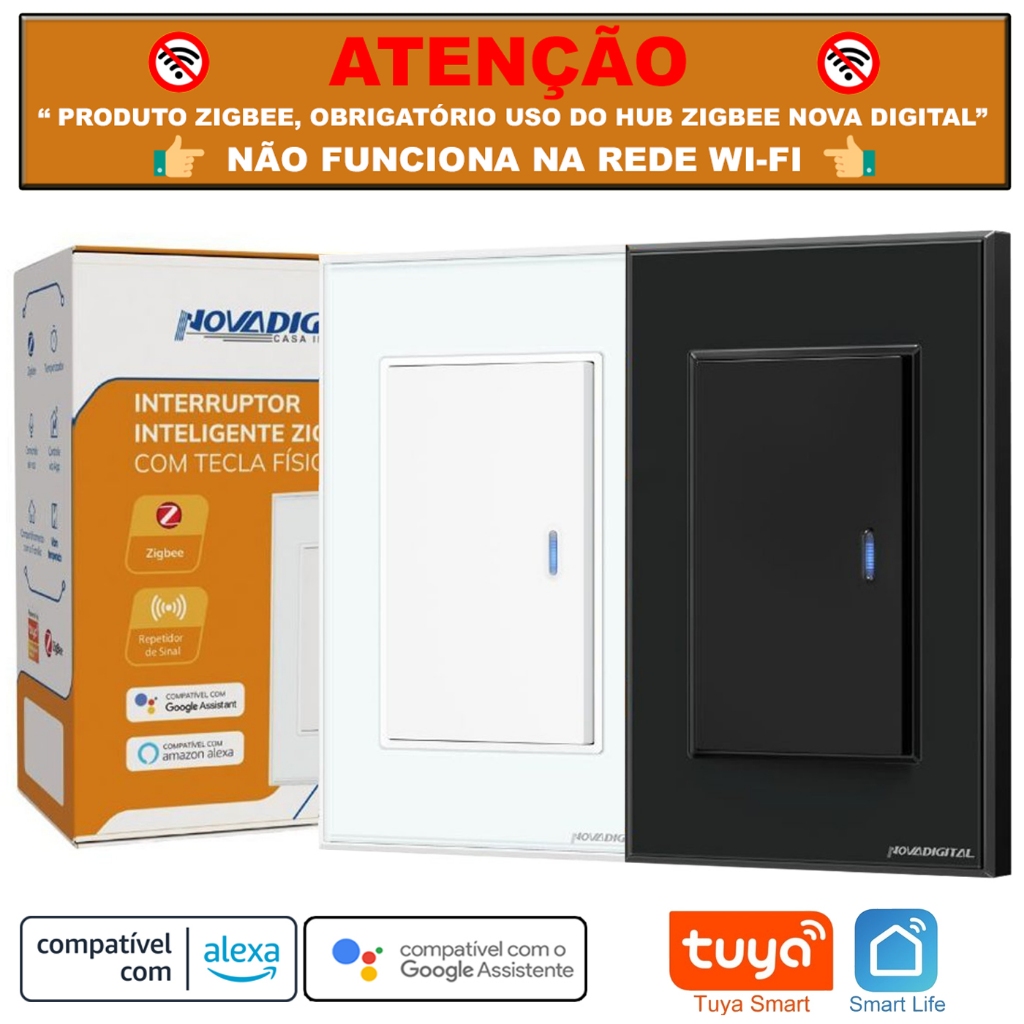 Interruptor Smart Zigbee 1 Botão Físico com Led Repetidor de Sinal Tuya Nova Digital > NÃO É WI-FI <