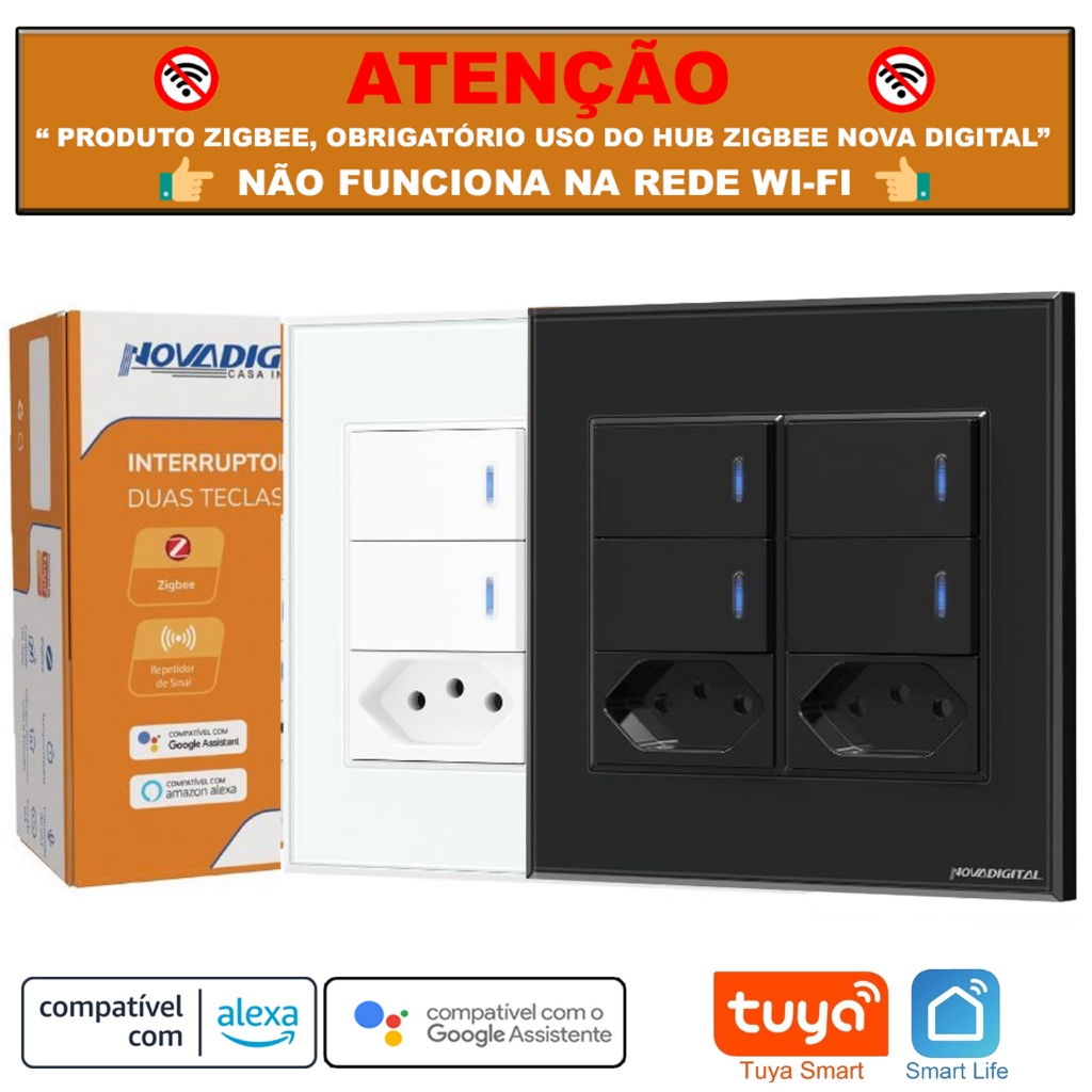 Interruptor Smart Zigbee de 4 Botôes e 2 Tomadas Tuya Nova Digital Compatível Alexa > NÃO É WI-FI <