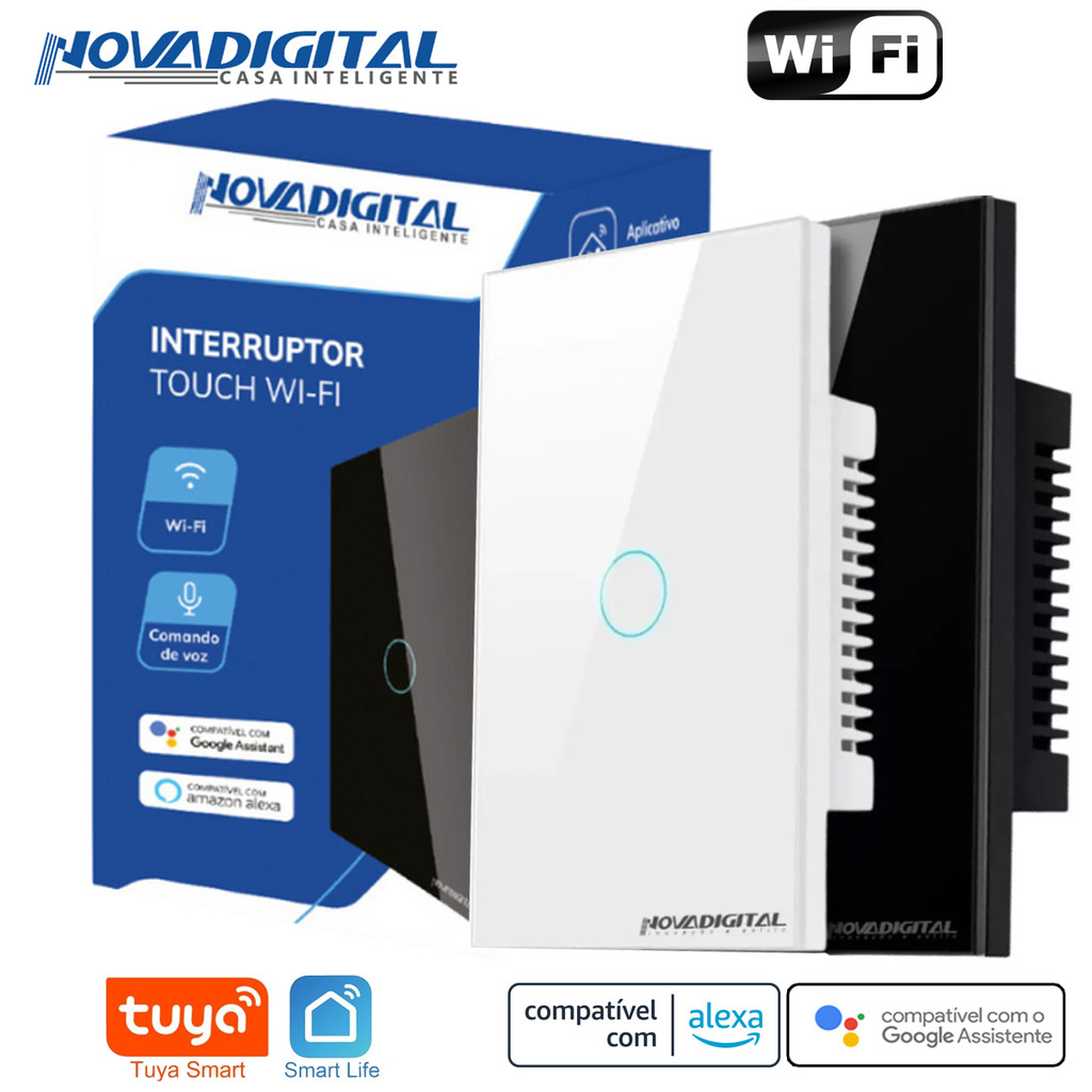 Interruptor Inteligente Smart Wi-Fi de 1 Botão Tuya Nova Digital - Compatível com Alexa e Google Home