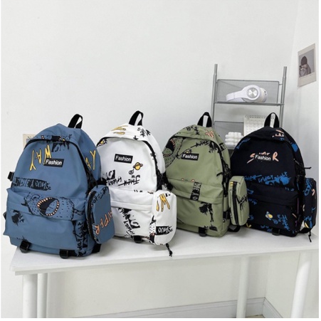 Mochila feminina com impressão de letras de tendência nova mochila de duas peças de náilon com estojo de lapis
