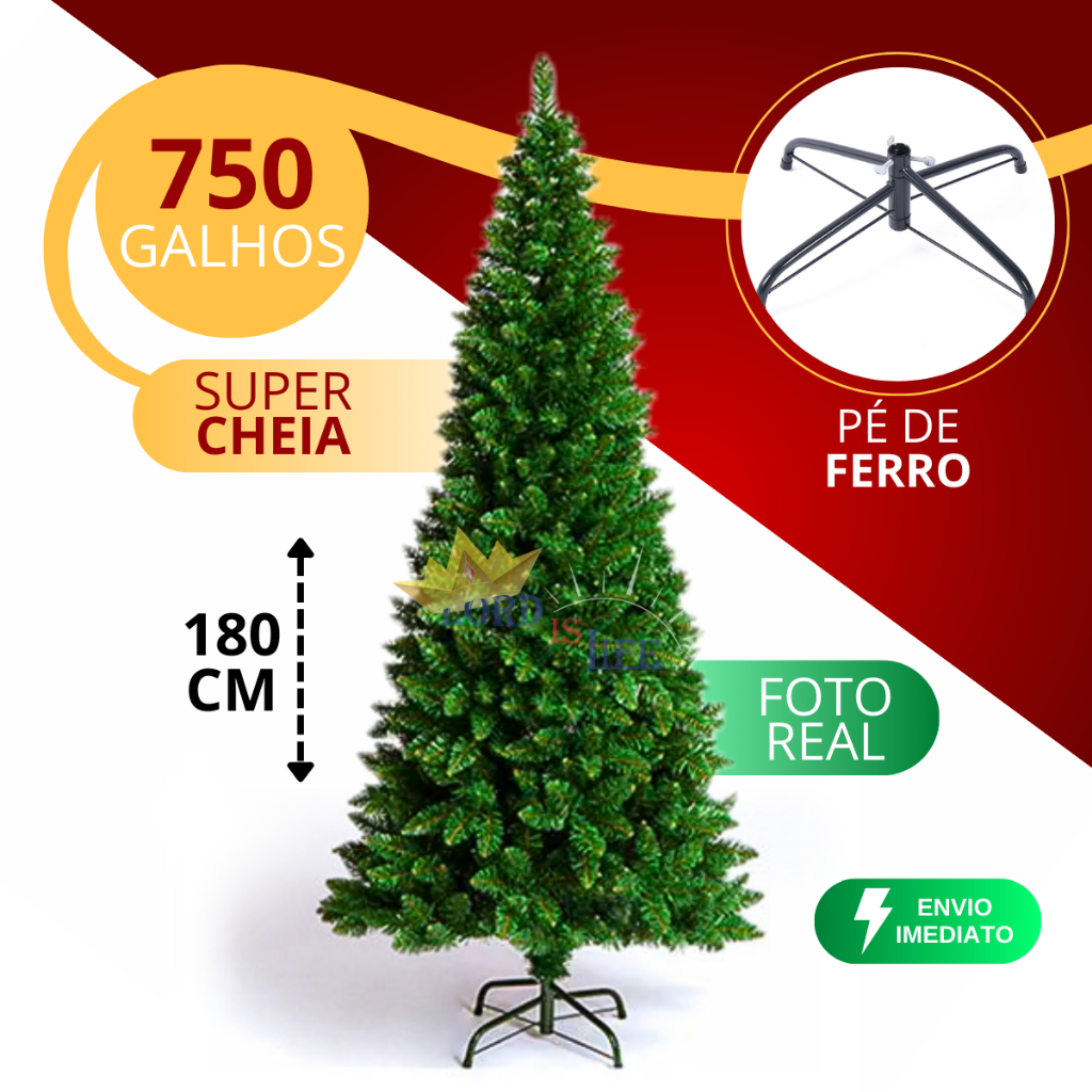 Árvore de Natal 180 cm 750 Galhos Super Cheia Grande Luxo Decoração de Natal 2023