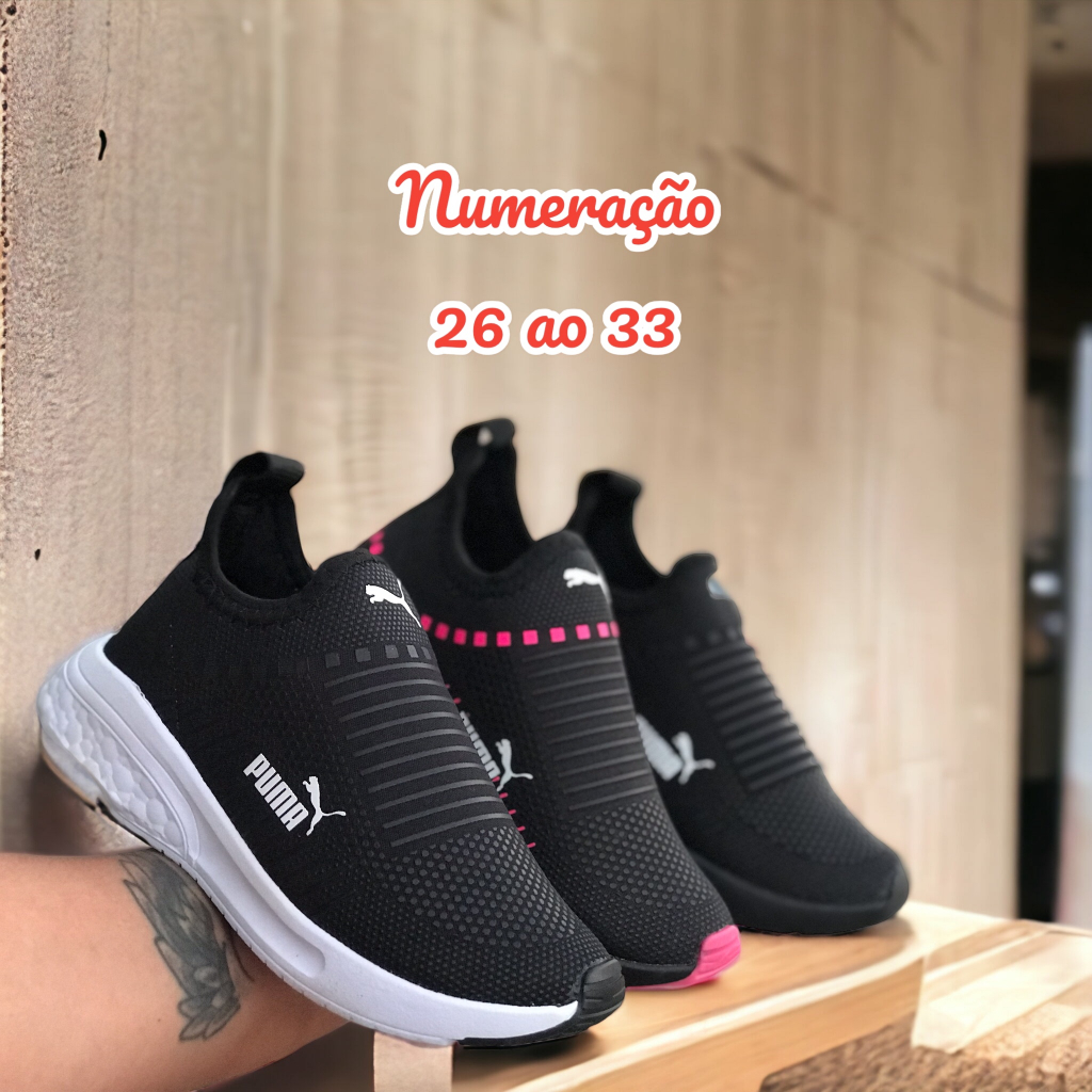Tenis facil de calça infantil menino e menina preto sem cadarço