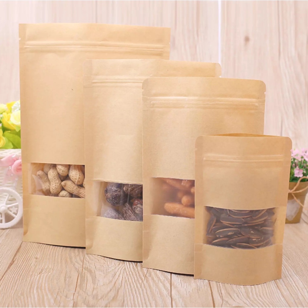 Sacos de Papel com Visor - Stand Up Pouch Kraft Fosco com Zip Lock (Pacote com 50 Unidades)