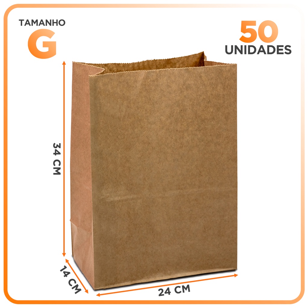 50 Sacos De Papel Kraft Natural 34 X 24 X 14 Cm Tamanho G - Melhor Sabor