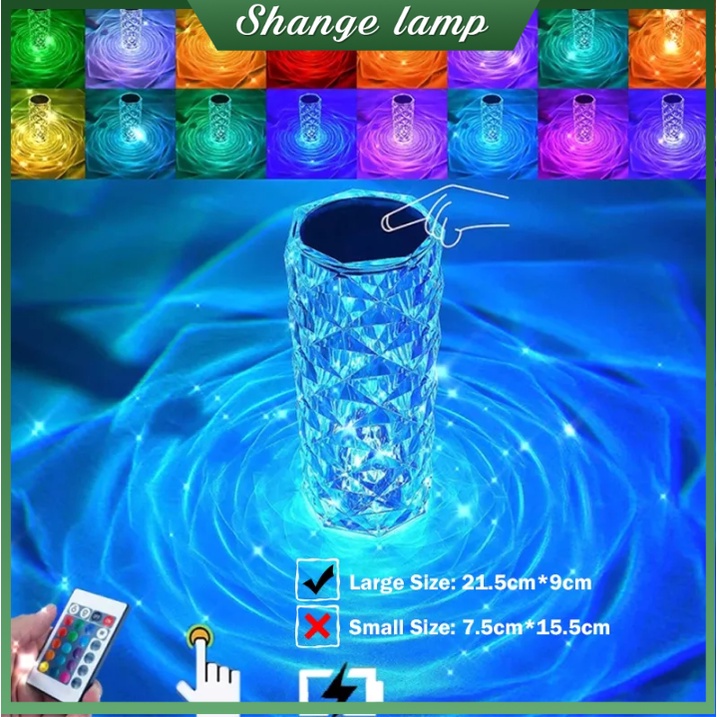 Lâmpada De Mesa De Cristal LED Projetor De Luz De Rosa 16 Cores Toque Ajustável Romântico Diamante Noturna USB Touch/Luminária Abajur Várias Cores Sala Quarto