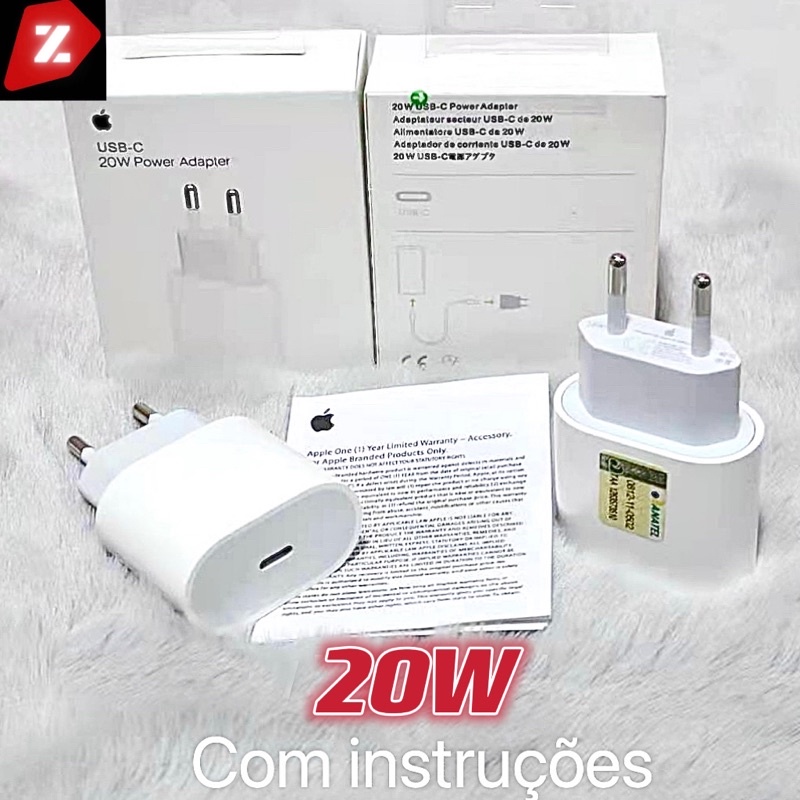 Caixinha Carregador de Iphone 8 XR SE 11 12-PD Cobos e 20W Power Adapter Original Apple