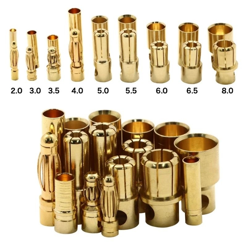 10 Pares Conector Banana 8.0mm, 6.5mm, 6.0mm, 5.5mm, 5.0mm, 4.0mm, 3.5mm, 3.0mm, 2.0mm para esc/motor Aeromodelo, helimodelo