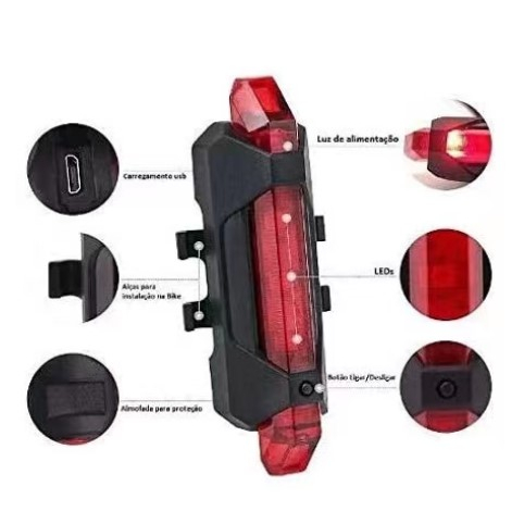 Pisca de Bicicleta Bike Sinalizador Luz Traseira Led Segurança USB