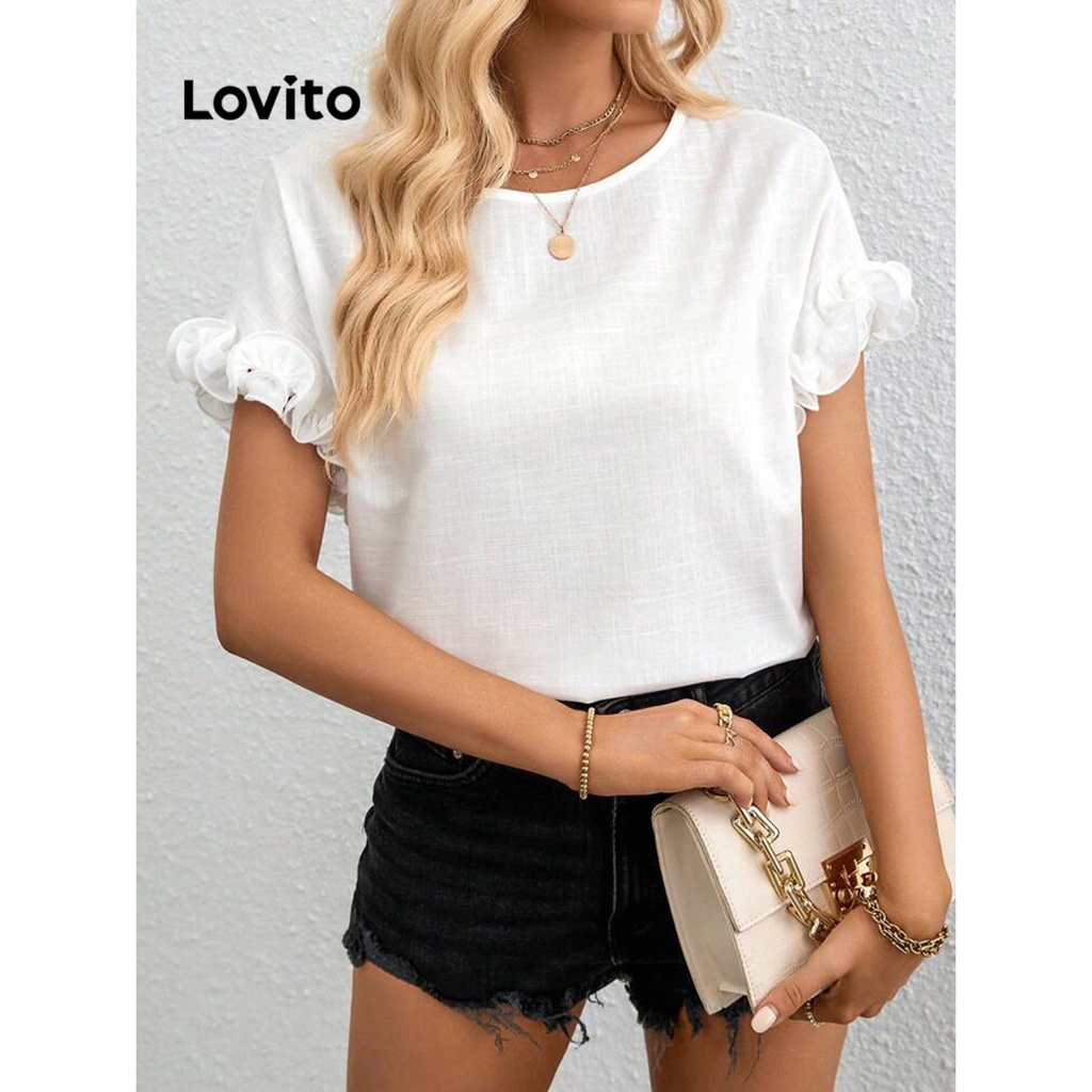 Lovito Blusa Casual Simples Com Babados Para Mulheres LNL35028 (Branco)