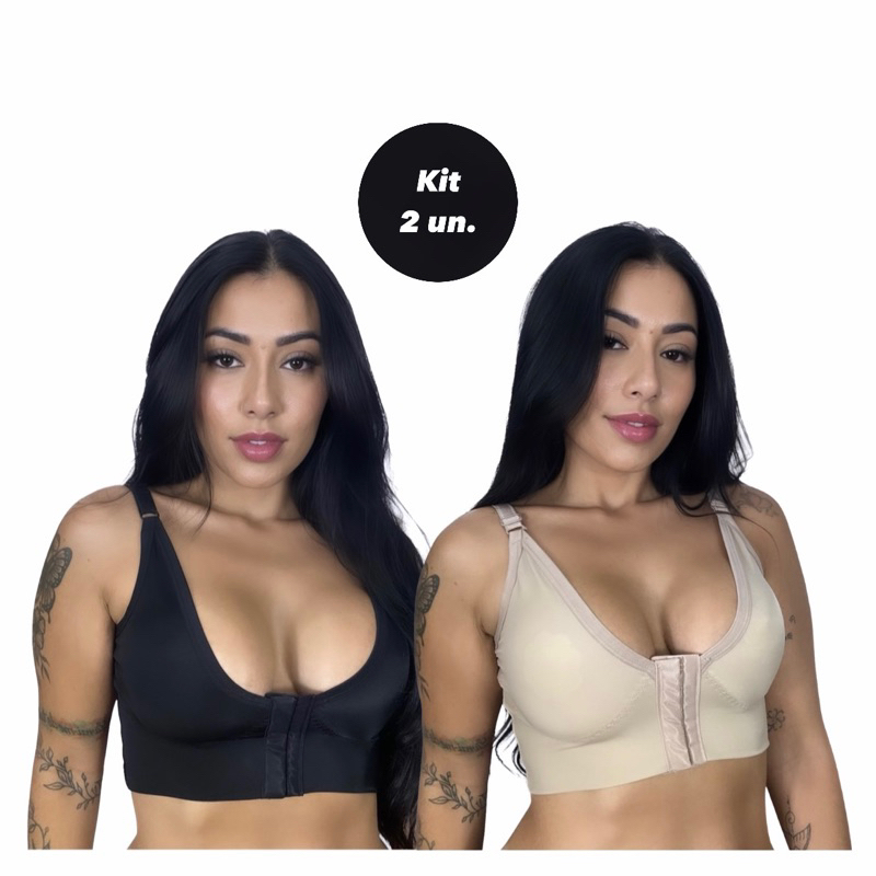 Kit com 2 Soutien Pós Cirúrgico de Cetinete Reforçado com Sustentação Silicone Mamoplastia Sutiã Sem Bojo