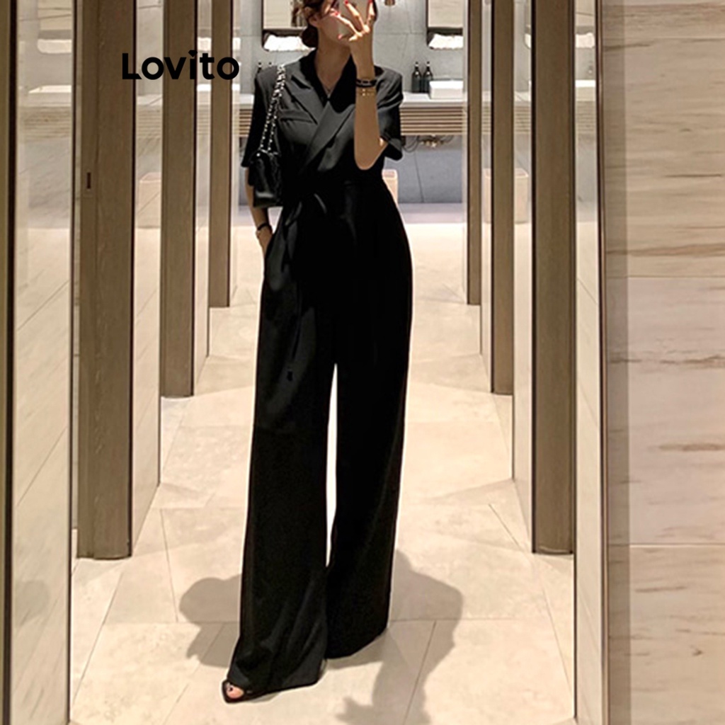 Lovito Macacão Casual Com Gravata Lisa E Bolso Frontal Para Mulheres LBL08217