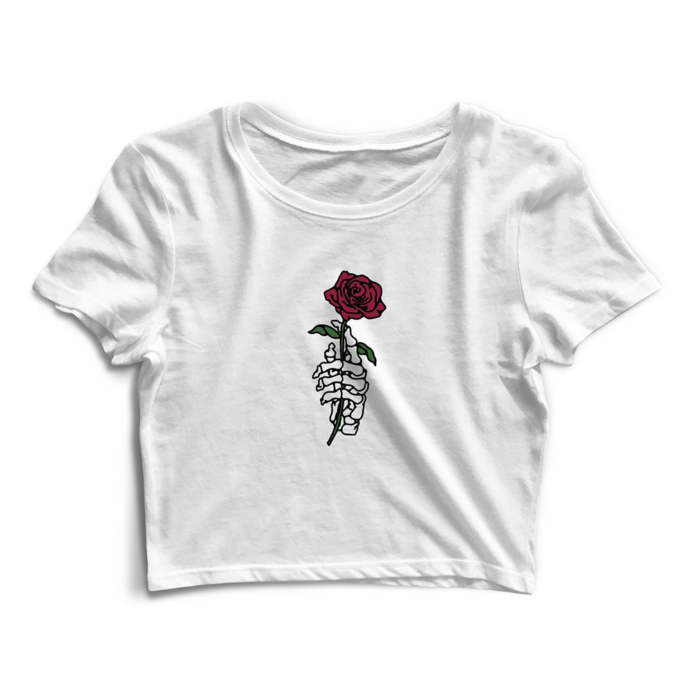 Blusa Blusinha Cropped Tshirt Camiseta Feminina Mão Segurando Rosa