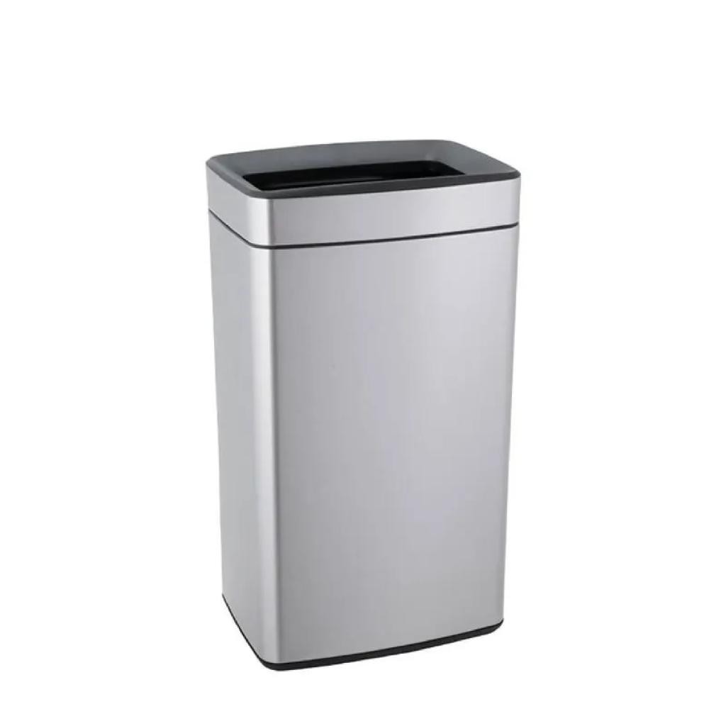 Lixeira Quadrada Em Aço inox 50 Litros com Tampo Aro Aberta