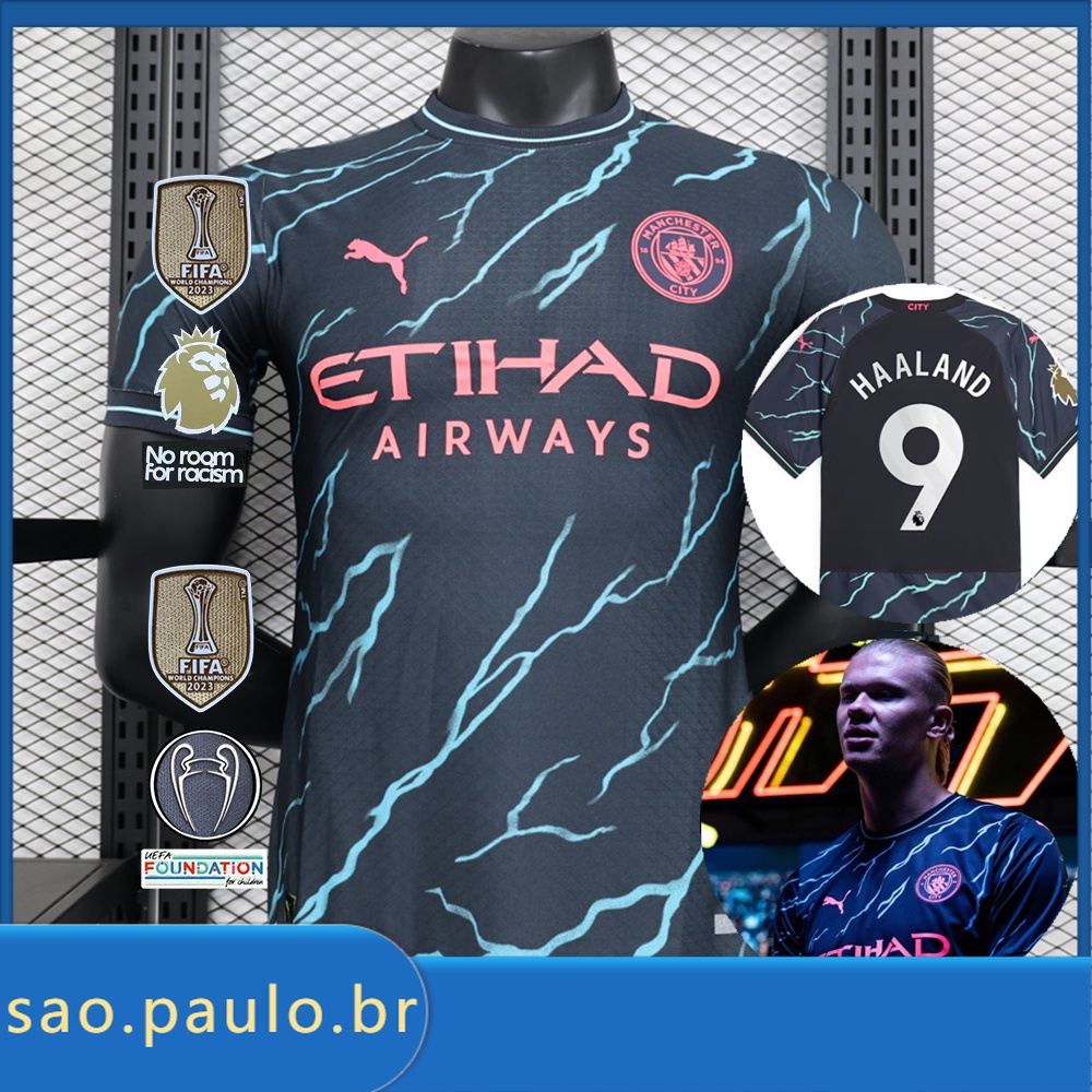 2023-24 Camisa Manchester City III Player Verson de Futebol Versão do Jogador Camisa