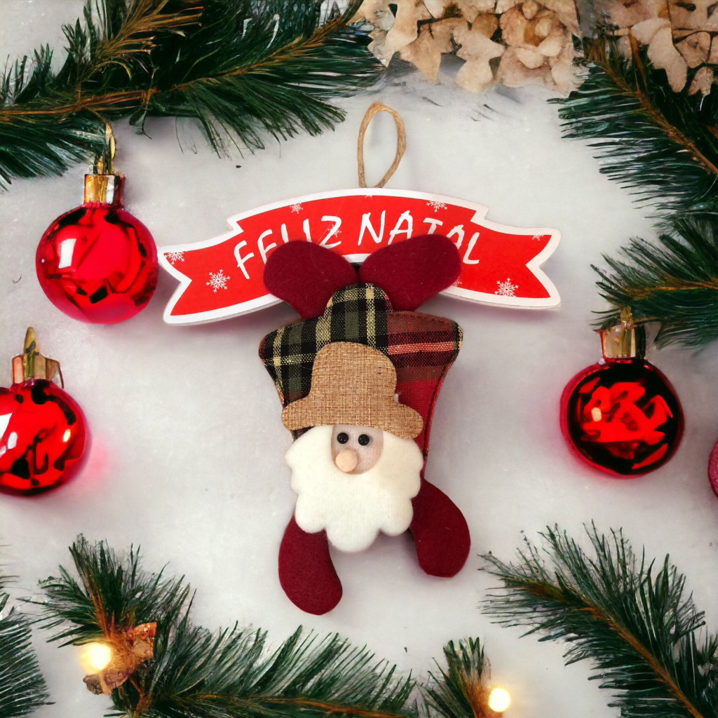 Enfeite Natalino para porta Árvore de Natal Pendente Papai Noel