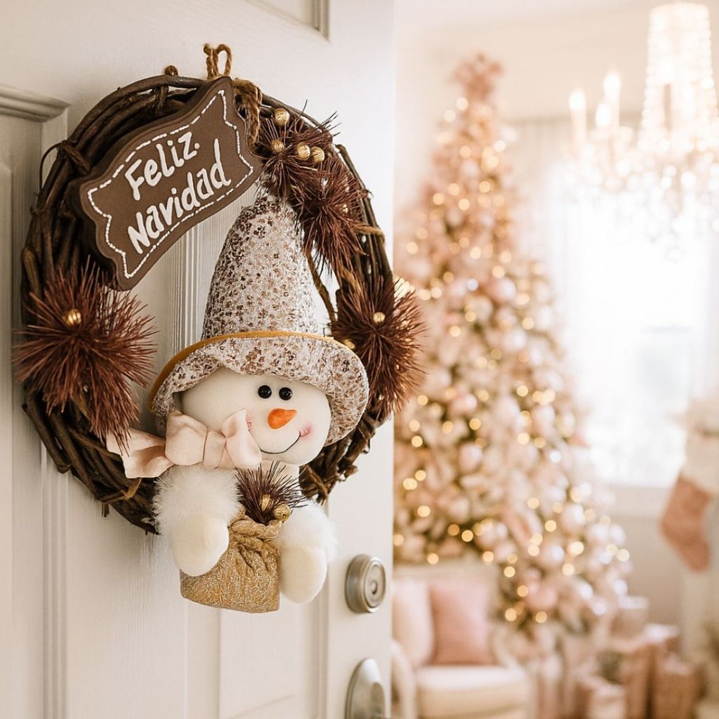 Enfeite Pendente De Porta Natal Papai Noel Boneco De Neve Com Guizo Decoração