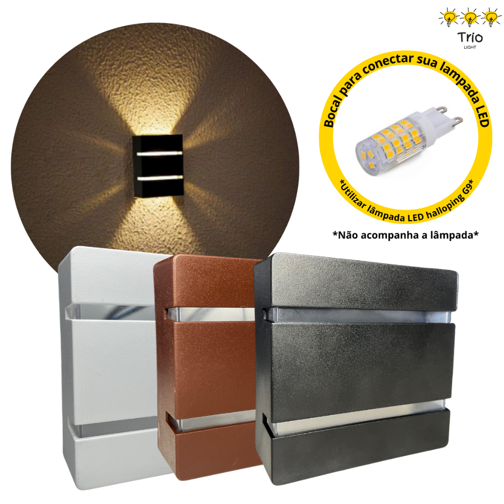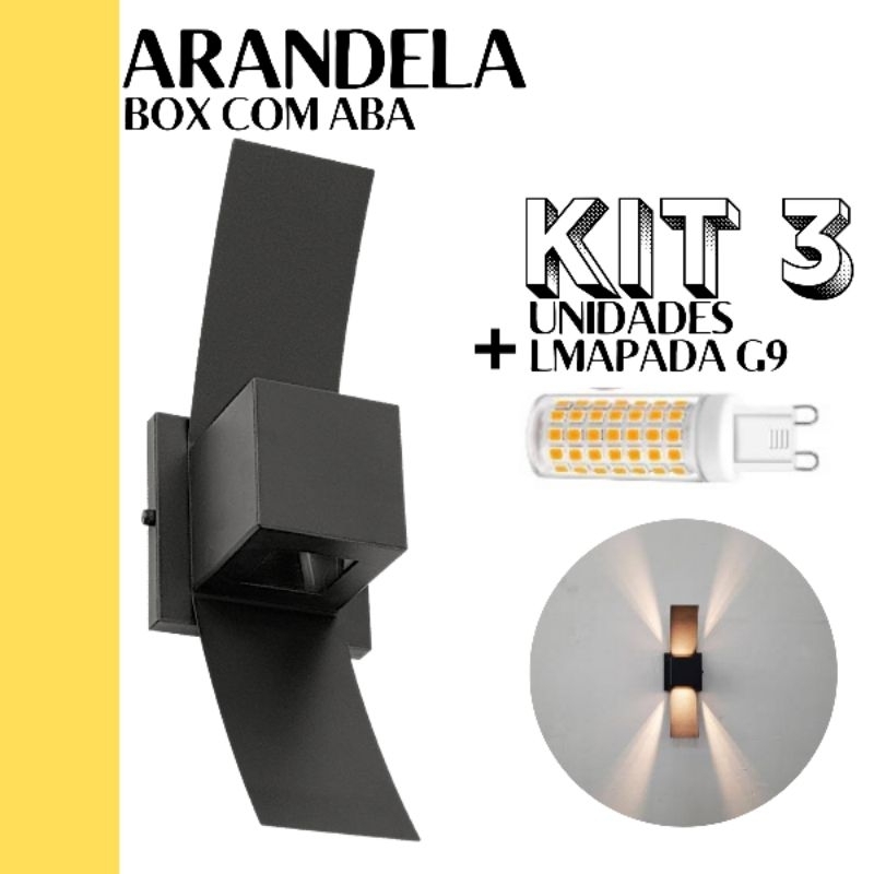 KIT COM 3 Arandela Box com Aba 2 Focos Luminária Externa Interna Muro Parede Alumínio + Led G9 de 5w