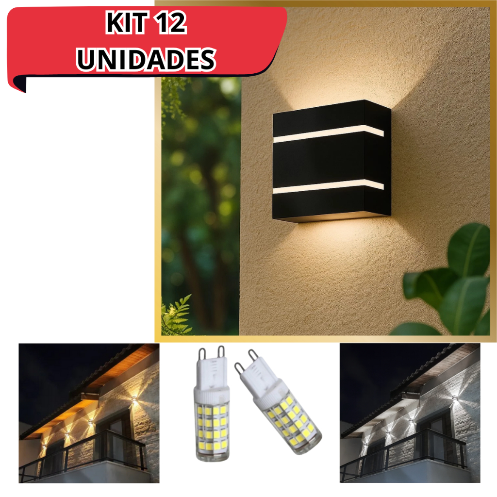 Kit 12 Arandela Luminária de Parede Externa Interna 2 Frisos 2 Focos Bivolt LED