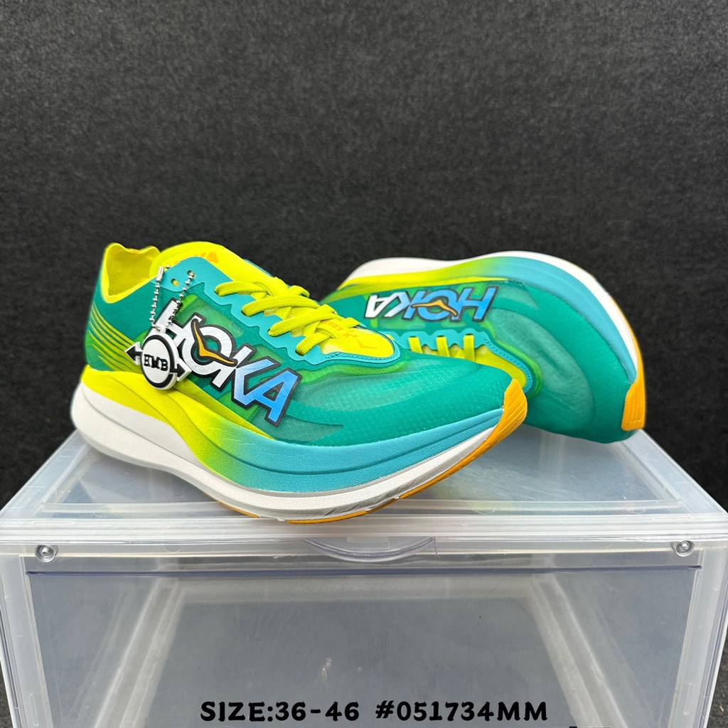 2023 hoka original De Foguete x2 celadon Azul/Verde primrose Resistente Ao Desgaste Antideslizante Confortável E Respirável Sapatos De Corrida casual De Baixo Nível Do Elevador